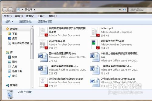 16,重新启动电脑,打开回收站,是不是发现回收站刚才清空的内容都已经恢复过来啦?希望大家喜欢这个经验,谢谢。