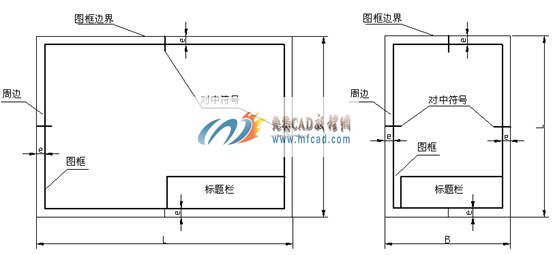图框线必须用粗实线绘制。图框格式分为留有装订边和不留装订边两种,如图1-2和图1-3所示。两种格式图框的周边尺寸ace见表1-1。但应注意,同一产品的图样只能采用一种格式。