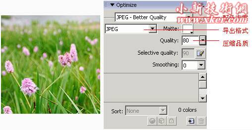 1.首先确定你的颜色数,256色的用GIF和PNG格式,256色以上的用JPG格式。