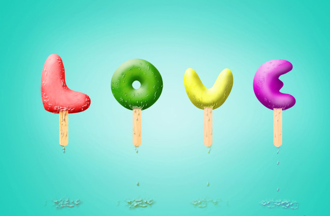 雪糕字制作起来要比看上去要复杂,表面的纹理不是用图层样式就可以完成的。需要用画笔或素材等慢慢加上去,再用图层样式等做出光感和立体效果。