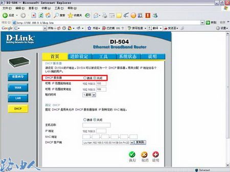 二、进入D-LINK路由器的设定界面,将DHCP服务器关闭即可