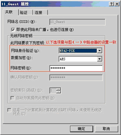 可以在计算机上设置相应的加密方式,与飞鱼星无线路由器上相关选项对应。