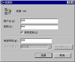 在建立连接之前,我们必须已经从本地的Internet服务供应商(ISP)那里得到了一个上网的帐号,知道这些信息:帐号名称、帐号密码、网络接入电话。下面我们就以网络直通车,接入电话169,帐号/密码均为169为例来建立一个连接帐号。