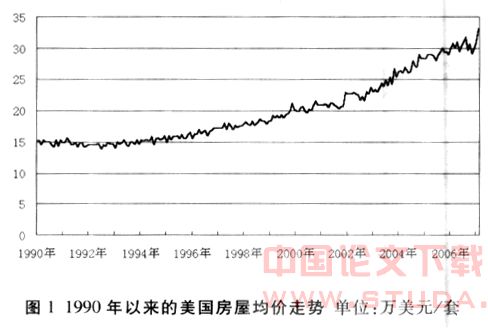 据2000年的统计资料,当时美国中西部和南部平均房价在15万美元左右,东部和西部海岸郊区平均房价为25万美元左右,两者差距不足一倍;而在 1970年,两者则分别为20000美元和25000美元,差距实际只有五分之一,可见美国房产在部分地区的升值速度。尽管如此,根据统计,30年中 (1970年—2000年)绝大多数年份(18年)美国房价年增长幅度仅为2%,甚至低于当时的消费品物价指数(CPI)涨幅,只有很少的年份超过5%。这也令进入20世纪90年代后的房地产价格上涨凸显“蓄之既久、其发必速”之势。