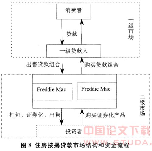 房地产资本运动几十年来一直活跃,主要得益于住房金融的不断发展。即使在上世纪30年代的大萧条时期以及80年代末的S&L(储蓄和贷款协会)危机中,住房金融创新也没有停止。美国住房金融市场是金融市场的重要组成部分,它主要由两级按揭贷款市场构成:一级市场主要是住房按揭贷款的初始交易,以私人金融为主导,依靠出售按揭贷款补充资金供应。二级市场是住房按揭贷款的再交易和再流通市场,以政府担保为基础,向原始贷款人购买按揭贷款,包装为证券化产品再转手出售给投资者。从 20世纪90年代开始,住房贷款被证券化的比例快速增长。这些证券化产品不仅提高了住房购买者的购房贷款供给能力,也降低减轻了银行的资产负债率,还为投资者提供了一种回报高于国债而低于企业债券,风险低于企业债券而高于国债的投资机会。
