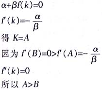 如果进入者只是以利润最大化为目标 ,而不考虑行政目标,则其一阶极值条件为:f′(k)=0,得K=B。