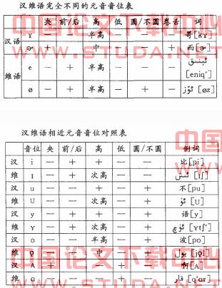 论文关键词:汉语 维香尔语 元音 音位 对比