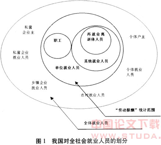 目前我国对“工资总额”和“劳动报酬”的统计仅仅局限于“单位就业人员”的狭小范围,而将乡镇企业和个私企业就业人员排斥在外,并不能反映目前我国劳动力的真实构成。