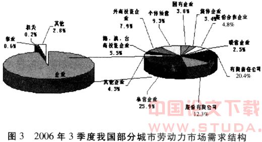 从劳动力构成的动态变化看,据中国劳动和社会保障部最新公布的“2006年第3季度部分城市劳动力市场供求状况分析”,在城市劳动力市场需求中(不含乡镇企业),企业用人占主体地位,所占比重达96.4%.而在企业用人需求中,私营企业的用人需求最大,其需求比重为25.9%;个体经营企业的用人需求比重也较大为 9.3%,超过国有、集体企业(7.2%)、外商投资企业(7.9%)和港澳台投资企业(5.5%)。据此推算,私营和个体企业的用人需求已经占到城市劳动力市场需求的34%.没有任何理由将城市劳动力市场中如此庞大而且不断增加的私营和个体企业就业人员排斥在“职工工资”的统计范围之外。