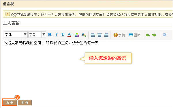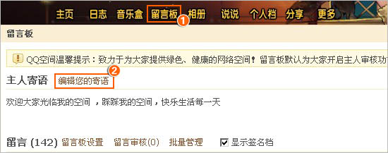 怎么编辑QQ空间留言板的主人寄语?
